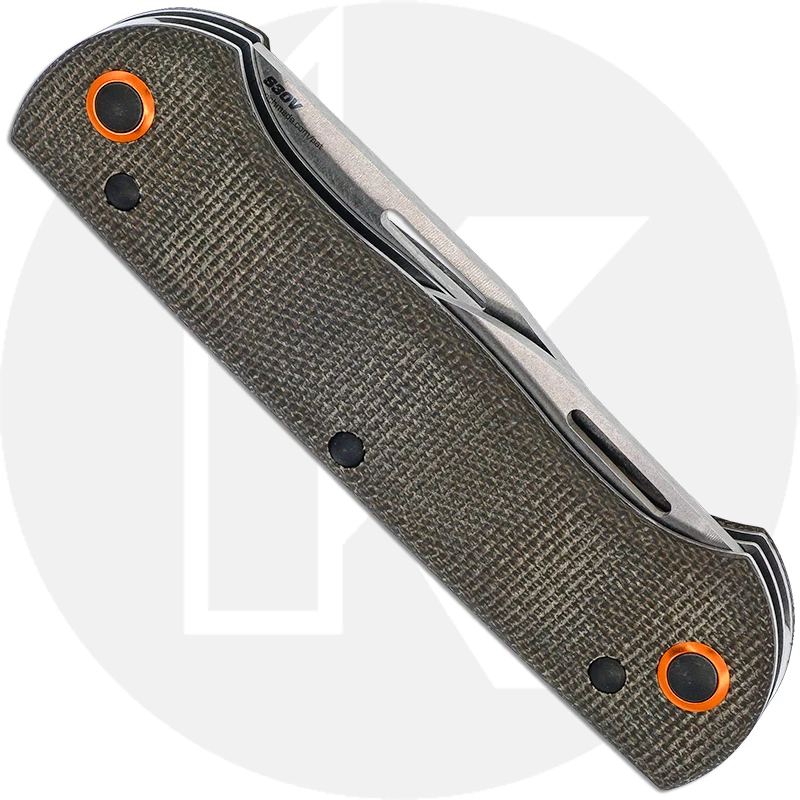 The 317-1 Benchmade Weekender is a handy little slip joint pocket knife that features non locking clip point and spear point blades made of CPM-S30V stainless steel, .090 inches thick, with a Rockwell hardness of 58-60, and a cap lifter. The dark brown canvas micarta handle has ergonomic contours for comfortable grip, and contrasting orange aluminum pivot rings for visual interest. This Benchmade Weekender has a closed length of 4.08 inches, and it weighs 2.28 ounces. Proudly made in the USA.