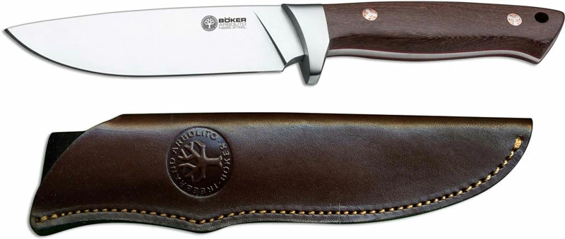 Boker Knives Boker Arbolito Hunter 02BA351G – Satin Drop Point Fixed Blade – Guayacan Ebony – Leather Sheath