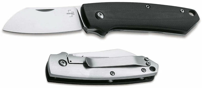 From the Boker website: The Boker Plus Cox Pro, designed by Jens Anso, combines high stability with compact design and a reliable frame lock mechanism. The robust, four millimetre thick blade made of D2 has a fine hairline finish and is opened with two hands by nail nick. The self-supporting front handle scale of the handy pocket knife is made of textured G10, while the stainless steel back houses the frame lock. With lanyard hole, clip (tip-up/r) and high-quality nylon case for storage.