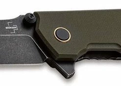 The 01BO164 Boker Plus Kihon Assisted G10 Knife, designed by Lucas Burnley, is a sleek everyday carry that features a 3.35 inch harpoon style blade made of tough D2 tool steel, .14 inch thick, with a dark stonewash finish, dual thumb studs, flipper and Assist for ambidextrous one hand opening. The handle, 4.48 inches closed, has a ball bearing pivot for smooth action, green G10 front with dark stonewash stainless steel back, sturdy frame lock with Hinderer overtravel preventer, gold anodized pivot and screw ring detail for visual interest, a large lanyard hole and a removable pocket clip mounted at the butt end. The Boker Kihon Assisted G10 Knife has an overall open length of 7.83 inches, and it weighs 4.37 ounces. Made in China.