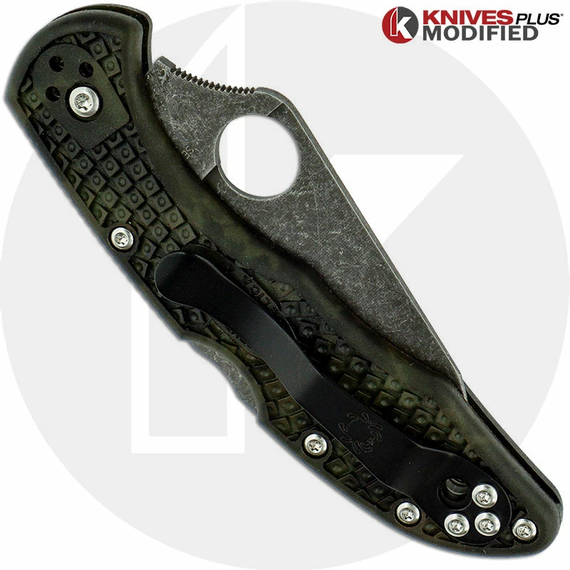 MODIFIED Spyderco Delica 4 – Acid Wash – Regrind – Zome Handle