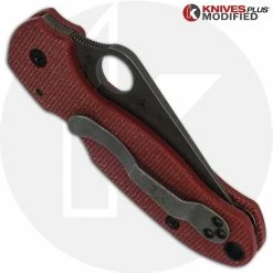 MODIFIED Spyderco Para 3 Knife with Acid Stonewash Blade + KP Red Linen Micarta Scales + All Black Hardware