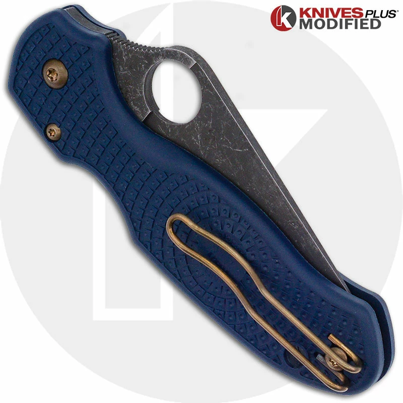 MODIFIED Spyderco Para 3 SPY27 Knife – Acid Stonewash Blade – Heat Color Hardware