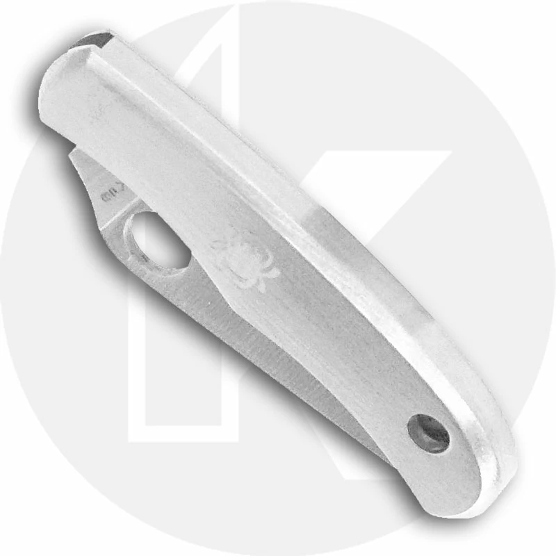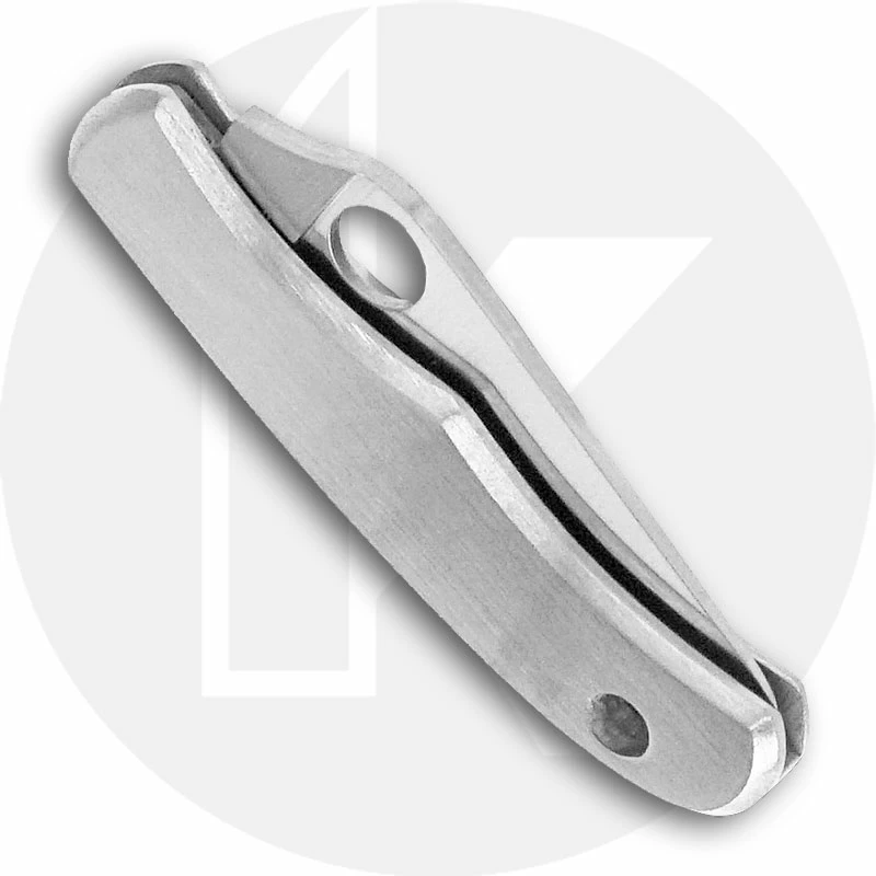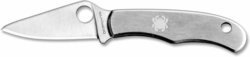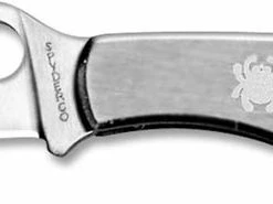 The illustrated Spyderco Knife is the Spyderco Bug Knife that features a 1.27″ blade made of stainless steel with Spyderco hole for ambidextrous one hand opening. The contoured stainless steel handle of this Spyderco Knife, 1.63″ closed, has Spyderco Bug detailing and a lanyard/keyring hole. No pocket clip; no lock. The Spyderco Bug Knife has an overall length of 2.9″ when open. Imported from China.