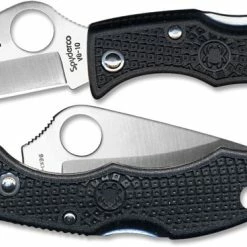 The illustrated Spyderco Knife is the Spyderco Ladybug 3 Knife that features a 1.93″ blade made of VG10 stainless steel. The blade of this Spyderco knife has a Spyderco hole for ambidextrous one hand opening, and a notched thumb ramp for secure grip. The contoured black fiberglass reinforced nylon handle, 2.48″ closed, has a Boye Dent lockback and lanyard/keyring hole. No pocket clip. The Spyderco Ladybug 3 Knife has an overall length of 4.41″ when open, and weighs only .6 ounces.